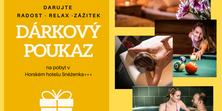 Dárkový poukaz můžete objednat na info@hotel-snezenka.cz nebo přímo na našich stránkách ZDE.